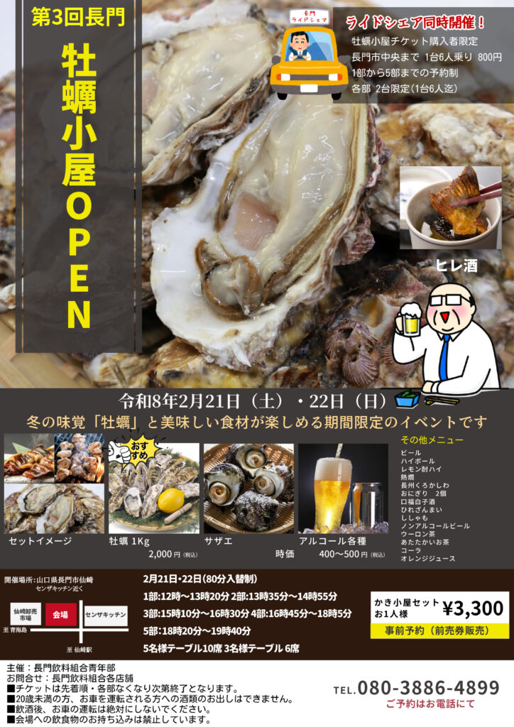 2026年2月21日(土)・22日(日)、長門市仙崎で「第3回長門牡蠣小屋」を開催します。